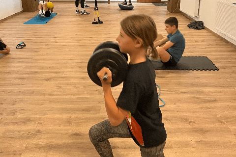 • podstawowy sprzęt fitness: maty, gumy x6, bosu x1, TRX x1, piłka rehabilitacyjna, hantle,